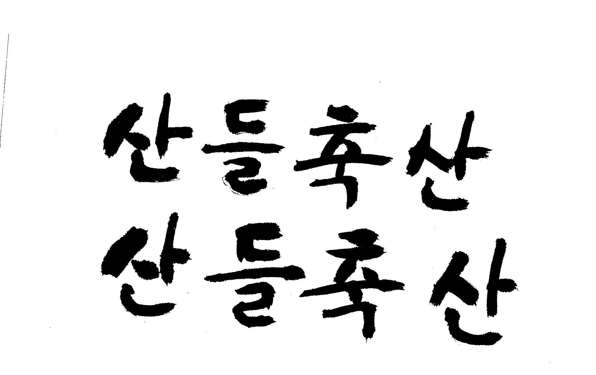 [급]붓서체로 "산들축산"글 캘리부탁드립니다. 김철호 일반 0 7681 2009.02.16 14:48 > > > > > > > > > "산들축산" 붓으로 쓴것처럼 캘리 부탁드립니다. 유려체 말구요 절말 급합니다. 부탁드립니다 참고로 JPG올립니다. 이와 비슷한거요... > > > > > >
