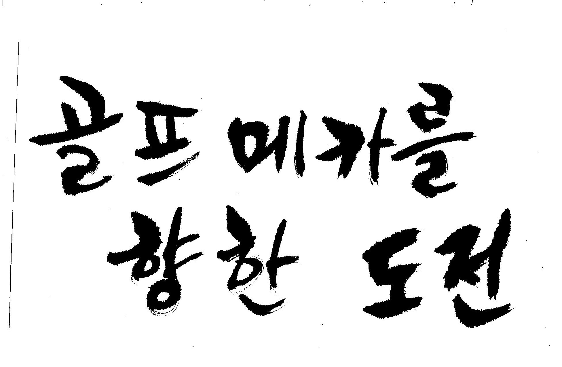 우경의 행복한 캘리세상-골프메카 김철호 일반 0 7698 2009.07.18 10:28 > > > > > > > > > 리듬감을 최대한 살리고 ㅡ 스포츠의 운동감과 밝음 > > > 기교섞인 획을 배제--일반적인 느낌 > > > 굵기변화를 통하여 도전 낱말을 강조 > > > 스타일은 비슷하지만 ...한 사람이 썼으니까 ㅎㅎㅎ > > > 서로 다른 글꼴을 올린 것은... 비교하여 보시고... > > > 편집자에게 선택권을 주는 것입니다 > > > > > >