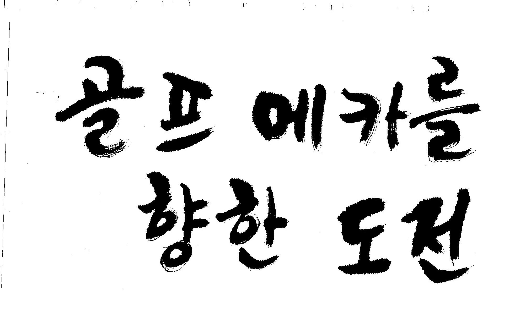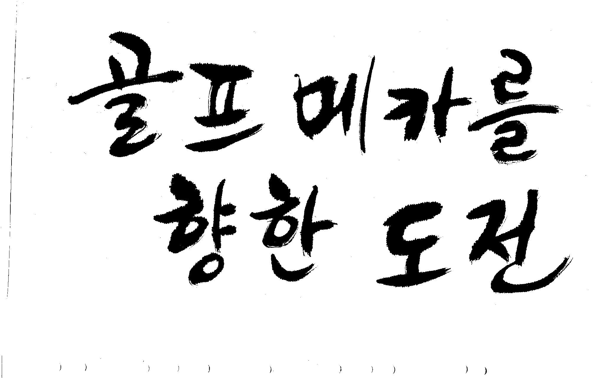 우경의 행복한 캘리세상-골프메카 김철호 일반 0 8658 2009.07.18 10:25 리듬감을 최대한 살리고 ㅡ 스포츠의 운동감과 밝음 기교섞인 획을 배제--일반적인 느낌 굵기변화를 통하여 도전 낱말을 강조 스타일은 비슷하지만 ...한 사람이 썼으니까 ㅎㅎㅎ 서로 다른 글꼴을 올린 것은... 비교하여 보시고... 편집자에게 선택권을 주는 것입니다